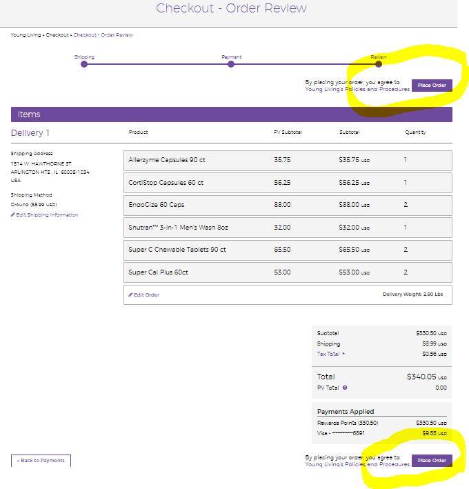 5. Następne okienko pozwala nam jeszcze na zmianę zamówienia, a jeżeli jest prawidłowe (“Check-out Order Review”) kliknij na “Place Order”.