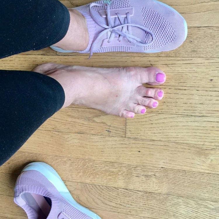 It was a perfect day for a long walk. As I was getting my shoes on, I noticed that my walking shoes match my pedicure. How funny.